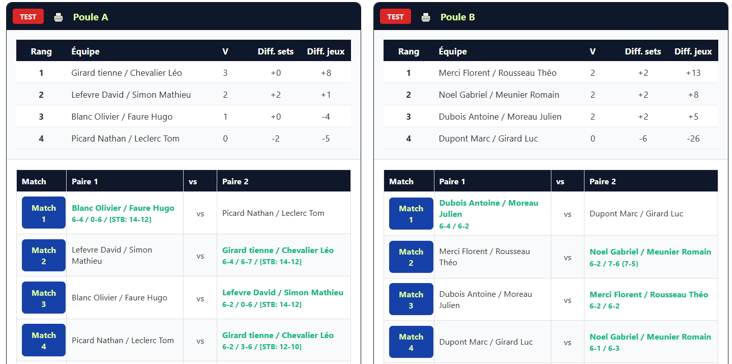 En centralisant l’inscription, la gestion des matchs, les classements et la communication avec les participants, ce site devient un véritable assistant numérique pour organiser et fluidifier un tournoi de Padel, convivial et parfaitement structuré, tout en améliorant la visibilité en ligne du club.